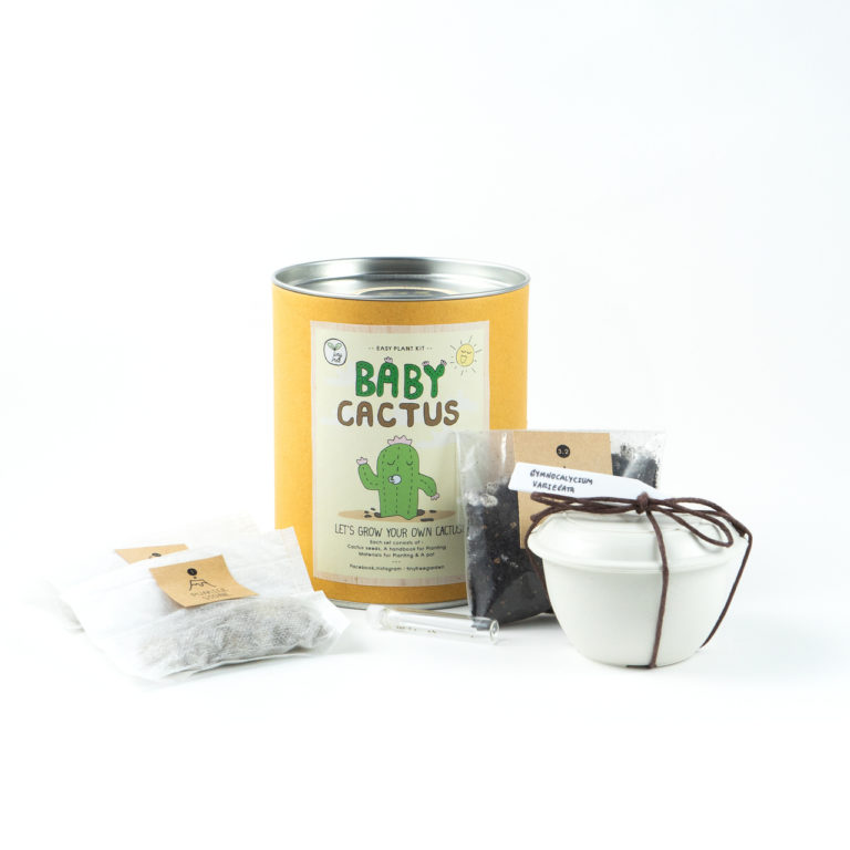 Cactus kit includes 10-12 cactus seeds, planting material, pot, cactus label and instructions ชุดเพาะปลูกต้นกระบองเพชรจากเมล็ด ประกอบด้วยเมล็ดพันธุ์ 10-12 เมล็ด วัสดุปลูก กระถาง ป้ายชื่อเมล็ดพันธุ์ และคู่มือการปลูก