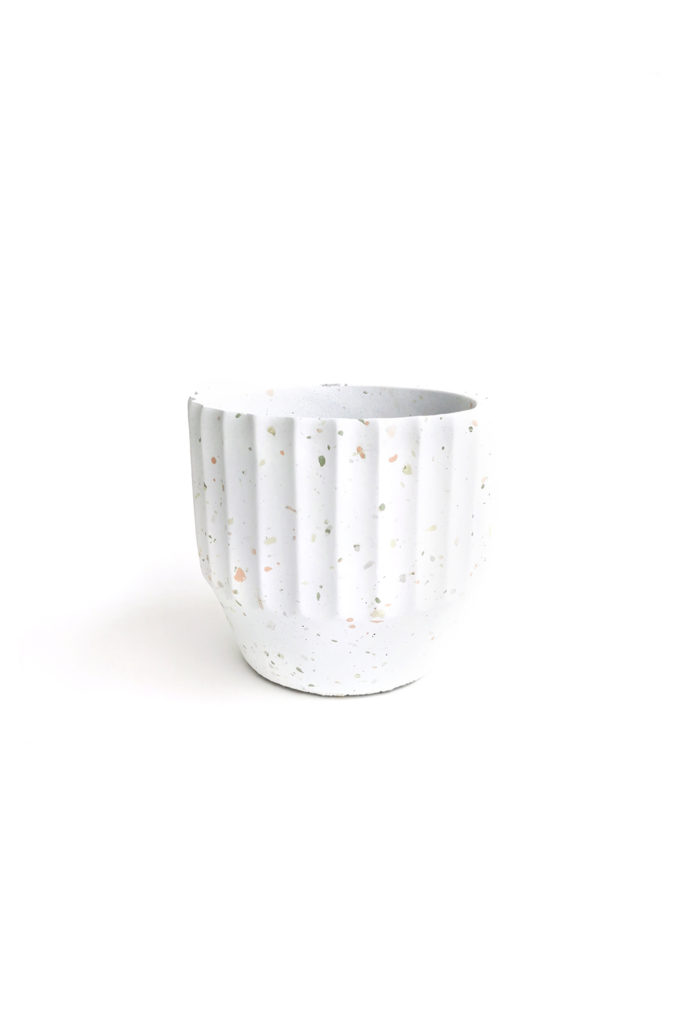 Cement planting pot with drainage hole. There are two colors ; black and white