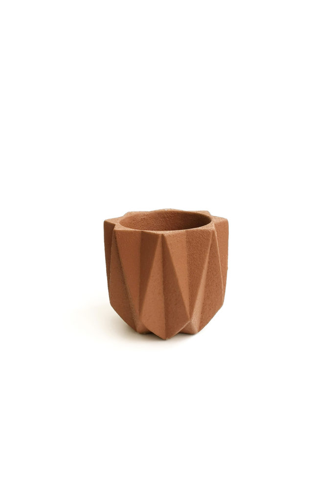 Cement planting pot with drainage hole. กระถางต้นไม้ลายเรขาคณิตแบบพีระมิด ตัวกระถางมีความแข็งแรง น้ำหนักกำลังพอดี พร้อมรูระบายน้ำ