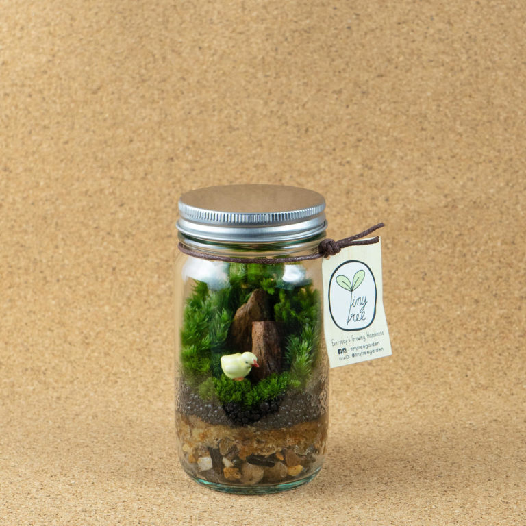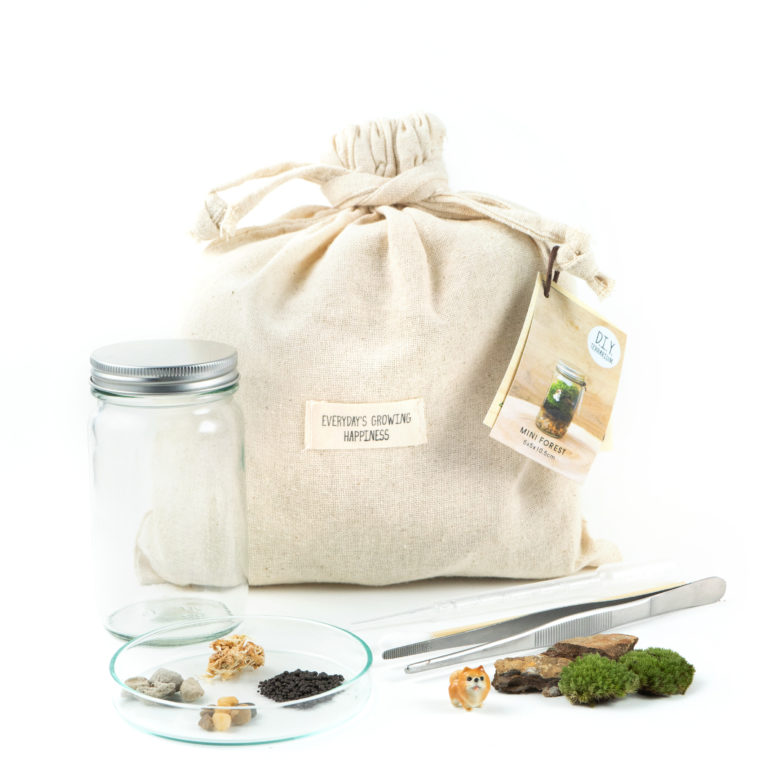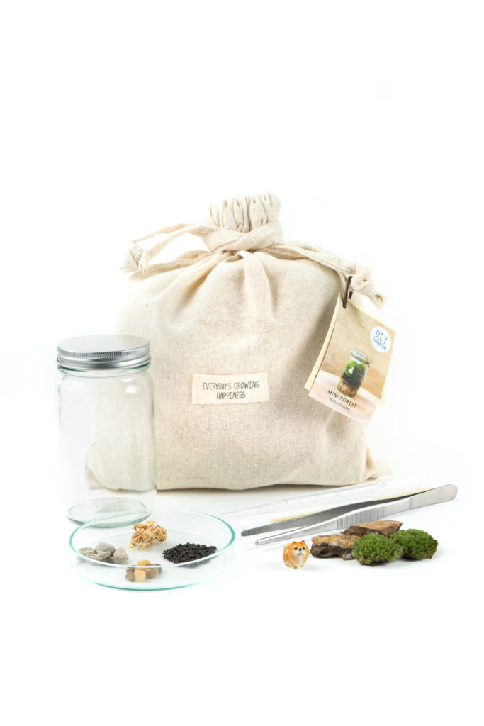Medium terrarium kit includes moss, planting tools, ceramic animal, step-by-step instructions and small container. (5 x 5 x 10.5 cm)